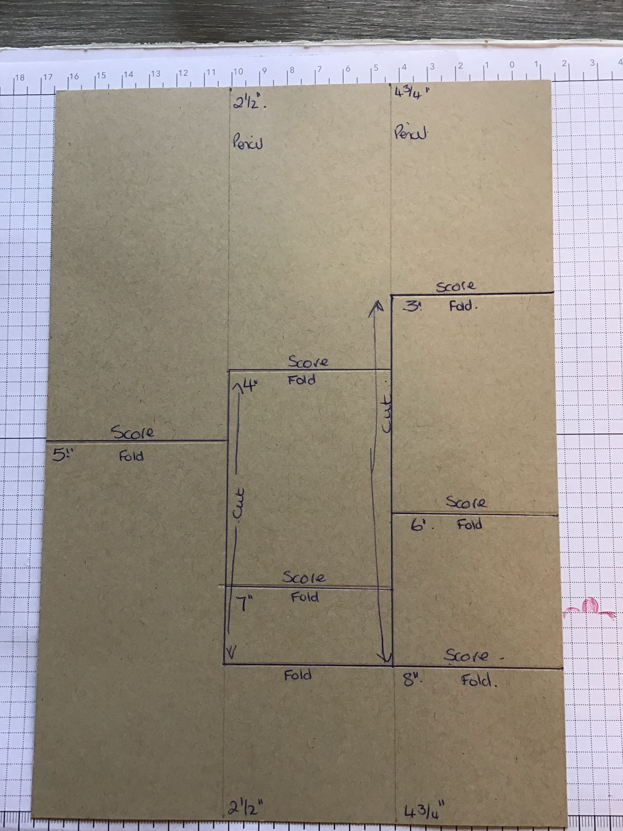 Turn on to the long side and score at 3" and 6" just to the first drawn pencil line, then at 8" to the second pencil line.